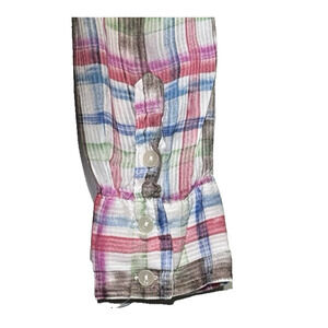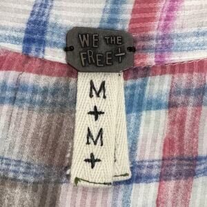 We The Free Women's Button Down Shirt Pink Blue Plaid Top Medium Long Sleeves