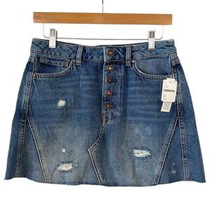 We The Free Womens Button Fly Distressed Cutoff Denim Skirt Blue Size 27 NWT
