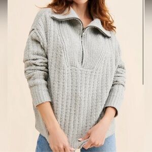 We The Free Womens Colorado Half Zip Shawl Collar Sweater Gray Large