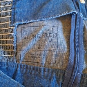 We The Free Denim studded mini dress. Front pockets. Side zip closure. Light stretch. Elastic panel across the back for comfort and fit. Womens size 6. Pit to pit flat lay 16" length from neckline to hem 24" measurements are approximate