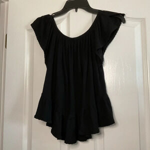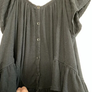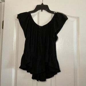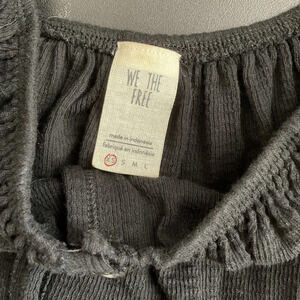 We The Free womens flowy button down W/ a slight cropped length size XS. You can also wear this top off shoulder.