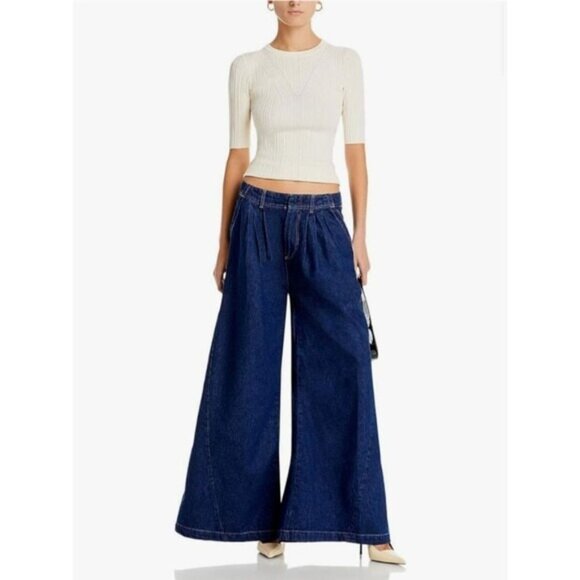 We The Free Womens High Rise Pleated Denim Wide Leg Jeans Blue Size 24 Pockets New