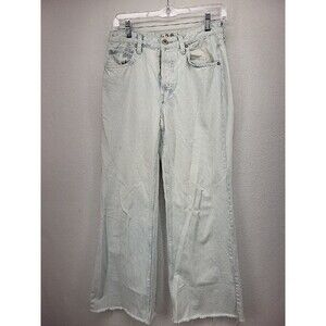 We The Free Womens Jeans Blue 28 Cotton Denim Flare High Waist Button Fly