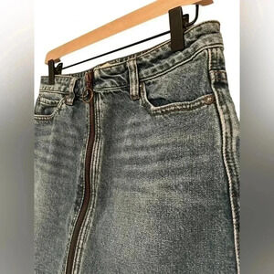We The Free Women's Medium Wash Zip Up Denim Mini Skirt Size 24