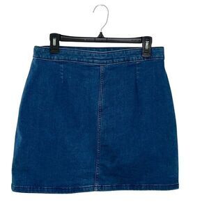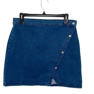 We The Free Womens Notched Front Button Denim Mini Skirt Blue Size 12
