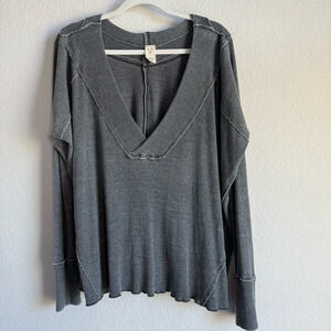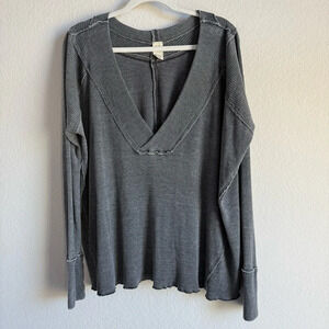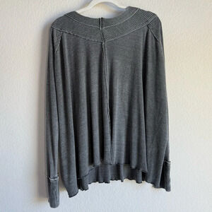 We The Free Womens Oceanview Ribbed Top Sz M Gray Distressed Boho Slouchy Grunge