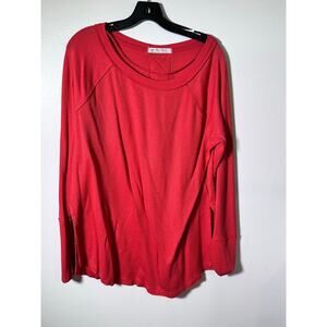 We The Free Women's Red Waffle Knit Oversized Pullover Top Size Large