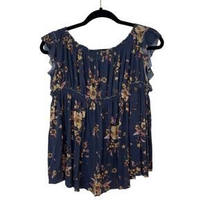 We The Free Women’s Woven Floral Print Off The Shoulder Blouse Navy Size M Boho