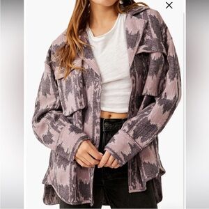 We The Free XSmall Jacket Izzie Cargo Jacquard Shacket Purple Combo 100% cotton