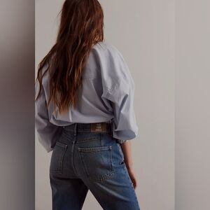 So classic from our We The Free collection, these jeans feature a high-rise fit and rigid cotton fabrication with slim straight-legs and 5-pocket styling.