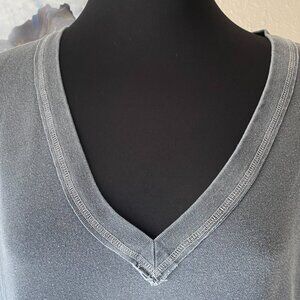 Slouchy long-sleeve pullover featuring a V-neckline. They call this color black, but it is really a dark gray.