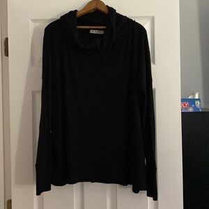 We The Free black sweater with cowl neck and split back opening. Measure 29” across the chest and 25” from shoulder to hemline. Barely worn maybe once. This brand fit is made to be oversized and slouchy.