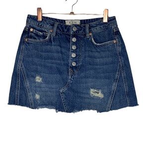 Free People We the free button fly raw cut hem distressed mini skirt.