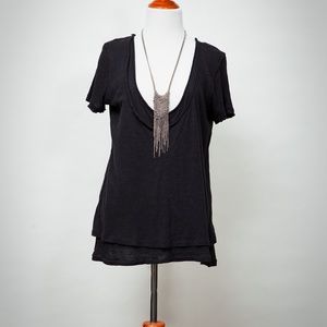 We The Free bohemian layered tee. Low cut scoop neck, great paired with a lace cami underneath. Dress up or down! Black. Size XS (fits S/M).