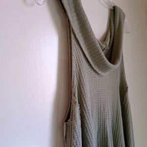 We The Free pea green swing it thermal cowl neck sleeveless top women's size medium in EUC. minor piling in areas.