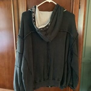 We The Free zip front hoodie size XS. Shell is 88% cotton, 12% viscose, waffle weave lining is 100% cotton. Machine wash cold with like colors, tumble dry low. Black. Oversized.