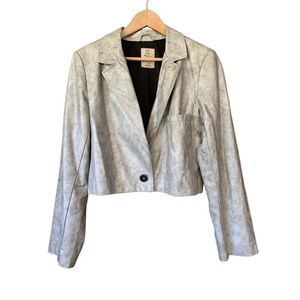 We The Free Block Party Vegan Leather Cropped Blazer Silver Size M