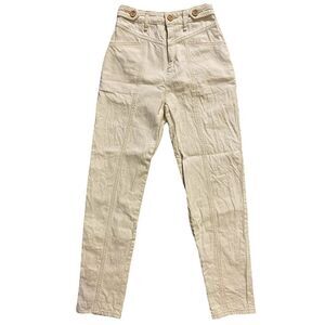 We The Free City Of Lights Linen Blend Cream High Waist Mom Jeans | Size 26