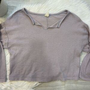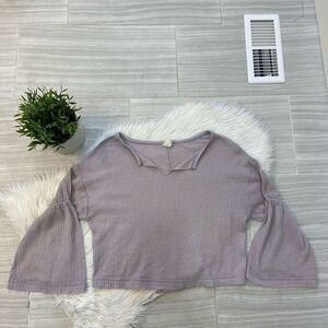 We The Free Lavender Wide Sleeve Waffle Knit Top