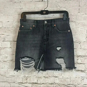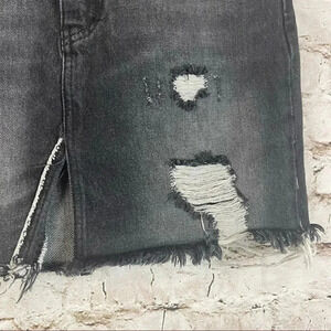 We The Free People Size 24 Relaxed & Destroyed Black Gray Denim Jean Skirt Fray