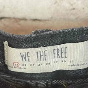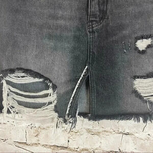 Women's We The Free Relaxed & Destroyed Denim Skirt Size 24. Light Black/Gray Wash with Distressing & Frayed Hems. Made of 100% Cotton. Gently Used, Please see pictures for details.