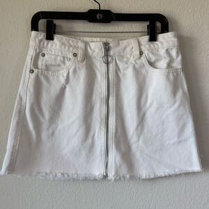 We The Free Zip It Up White Jean Skirt Sz 27 Raw Hem Distressed Cotton Mini