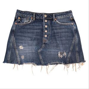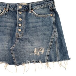We The FREE PEOPLE Distressed Harvey Button Fly Mini Jean Skirt Size 31 | 12