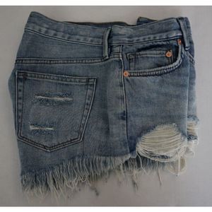 We The Free OB1249055 Women Sz 26 Blue Denim Button Fly Distressed Frayed Shorts