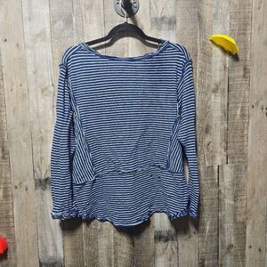 We The Free People Hong Kong Tee Long Sleeve Stripe Henley Blue White