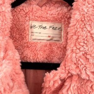 We The Free Pink Snap Button Front Long Sleeve Sherpa Fleece Jacket Size Medium