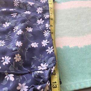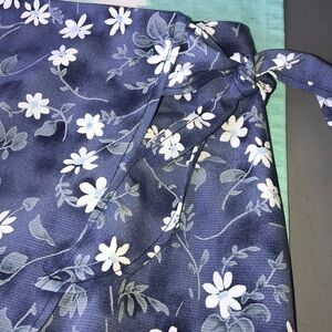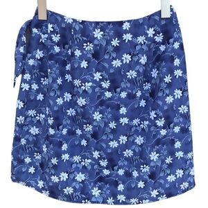 We Too Sportswear, vintage, wrap, mini skirt. Two button/tie closure. Blue with white floral print. Made in the USA. Size 7. See photos for measurements to ensure fit.
