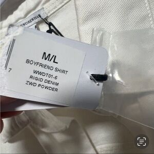 We What Wear White Denim Boyfriend Shirt Rigid Denim, New with tags
