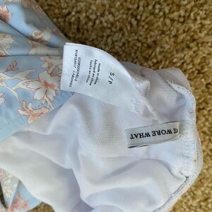 Great condition swimsuit from we wore what. Bow on front in beautiful pastel florals. Halter with tie. Has a small spot on the inner lining but it has been cleaned and was maybe worn once.