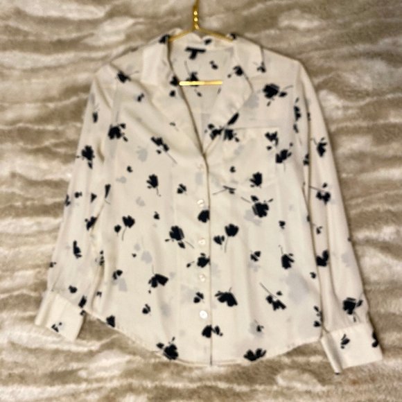 Who What Wear Button Down Floral Blouse (White/Black, Size S)
