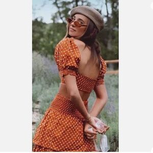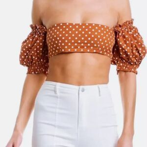 We Wore What Coco Top Brown Polka Dot Puff Sleeves Bandeau Cropped size small