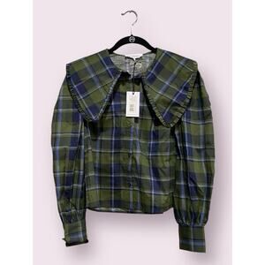 We Wore What Green & Navy Plaid Puffed Collared Shirt Size- XS