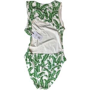 We Wore What Green Tropical Printed Muscle Tank One Piece Swimsuit Women M NWT
