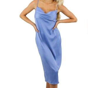 We Wore What NWT Slate Blue Satin Slip Dress