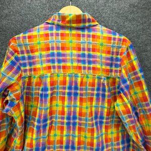 We Wore What Shirt Womens Medium Colorful Button Up Linen Blend Oversized Dad