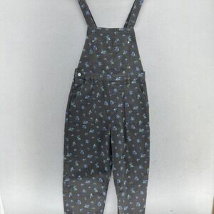 We Wore What Slouchy Slit Floral Black Denim Overalls SZ M Boho 90svibes Retro
