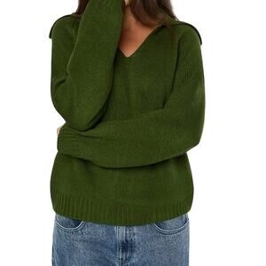 This cozy We Wore What sweater comes in a beautiful green color. Perfect for adding a pop of color to your wardrobe and staying comfortable all day long! The simple design is versatile and great for layering. This sweater is in excellent condition and ready for a new home!