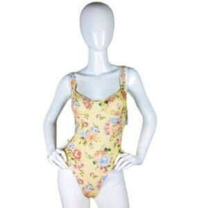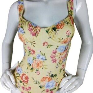 We Wore What Vintage Drapes Floral Ruched Cup One Piece Swimsuit Small