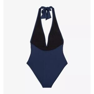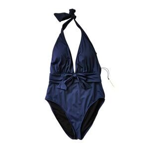 We Wore What Women Navy Blue Brooklyn Bow Halter One Piece Swimsuit Size L