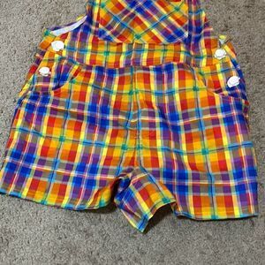 We Wore What Women's S Rainbow Overalls Short Romper Colorful Plaid Bold New