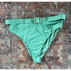 We Wore What XL Green Emily High Waisted Bikini Swim Bottoms in Crème De Menthe