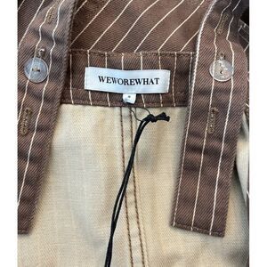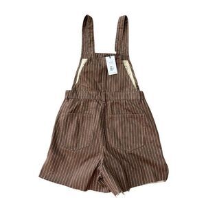 We Wore What Small Brown Pinstripe Overall Shorts Romper Shortall Cotton NWT