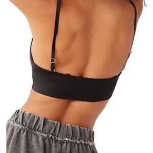 This longline bra is an essential. It comes in noir which is a solid black color. It features a scoop neckline with thick underbust. The material is a buttery soft material. Bust is not padded. The design gives a smooth and seamless look. It is a pull on style with adjustable straps that can be moved from a standard strap to a criss-cross in the back. Accenting gold hardware. New with tags.