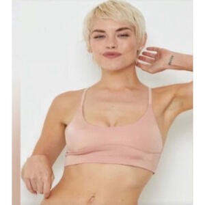 This longline bra is an essential. It comes in copper rose which is a lovely blush color. It features a scoop neckline with thick underbust. The material is a buttery soft material. Bust is not padded. The design gives a smooth and seamless look. It is a pullon stylewith adjustable straps that can be moved from a standard strap to a criss-cross in the back. Accenting gold hardware. New with tags.