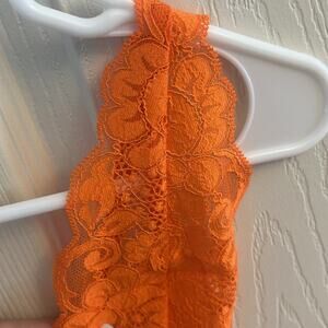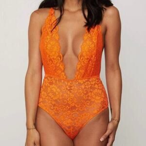 We are HAH 'Comin' in Haht' Orange Deep V Neck Lace Bodysuit NWT