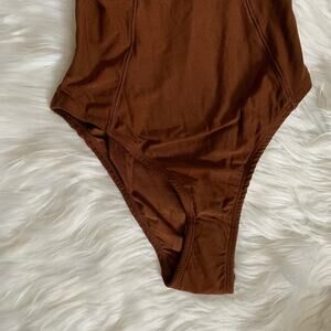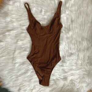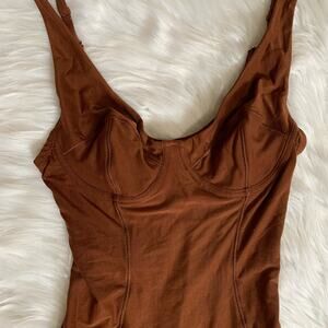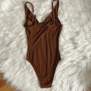 We are HAH NWT Eyes on Top Brown Slinky Underwire Bodysuit XS